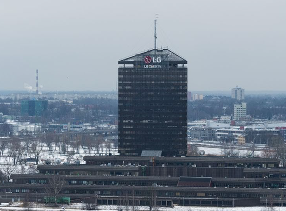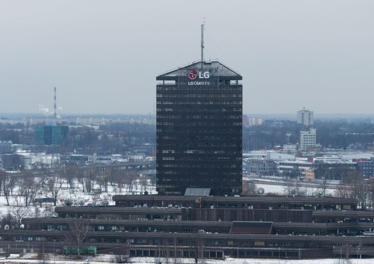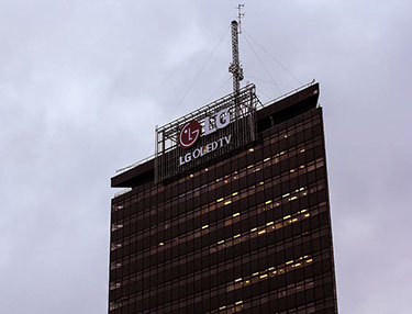 Компания Neonita.lv разработала технический проект и установила светодиодную рекламу LG на крыше здания латвийского телевидения.