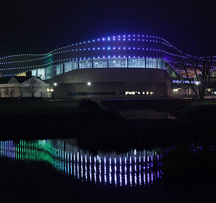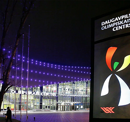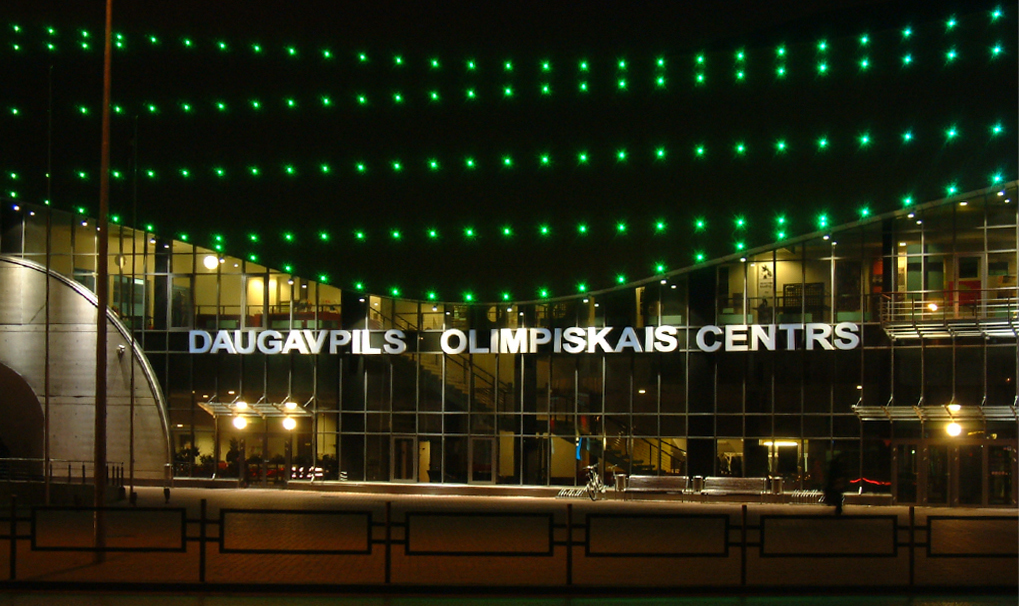 Mūsu uzņēmuma izstrādātais un uzstādītais Daugavpils Olimpiskā centra fasādes apgaismojuma dizains pēc saviem rādītājiem ir salīdzināms ar slavenā Abū Dabī tūristu kompleksa Yas Hotel apgaismojuma risinājumu. Projekts ir ievērojams ar to, ka speciāli tā īstenošanai mūsu uzņēmums sadarbībā ar sporta kompleksa galveno arhitektu ir izstrādājis unikālu dekoratīvās fasādes apgaismojuma sistēmu, kas pilnībā realizēta, balstoties uz mūsdienu tehnoloģijām LED inženierijas jomā.