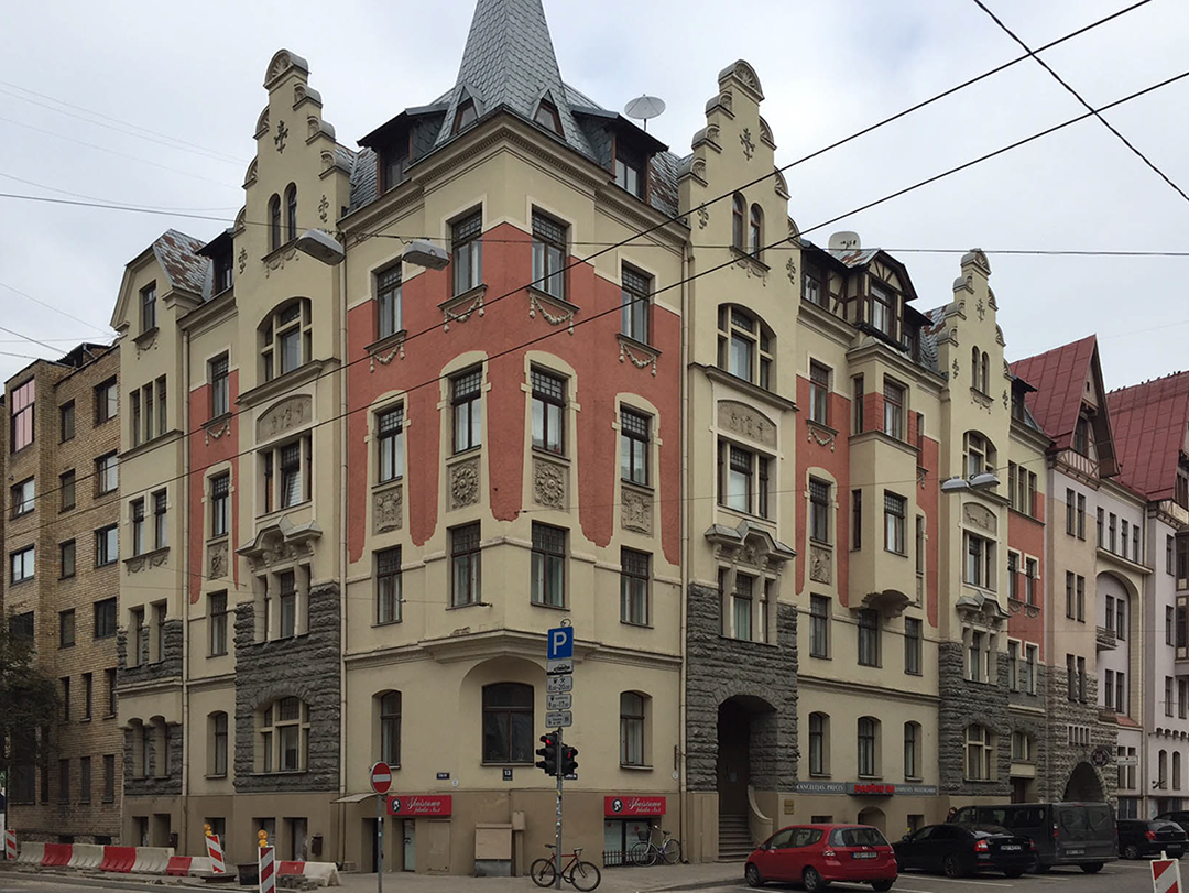 The building on the 13 Stabu street was built in 1907 (Arсhiteсt Vilhelms Hofmanis (1869-1945)). It is one of the few buildings of V. Hofmanis, built in the modern style. The building has exquisite shapes, its facade is decorated with numerous relief decorations and stone cladding.
