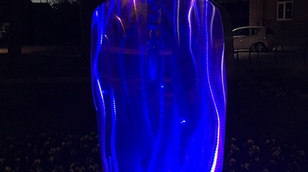 Для светового оформления объекта мы использовали поверхностные светодиодные прожекторы с возможностью программного управления оттенками подсветки.