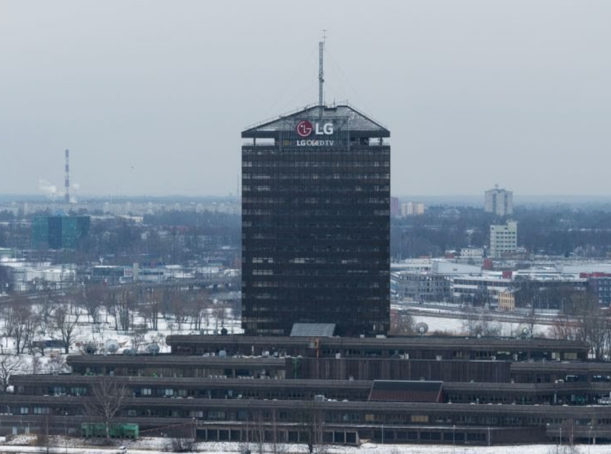 Компания Neonita.lv разработала технический проект и установила светодиодную рекламу LG на крыше здания латвийского телевидения.