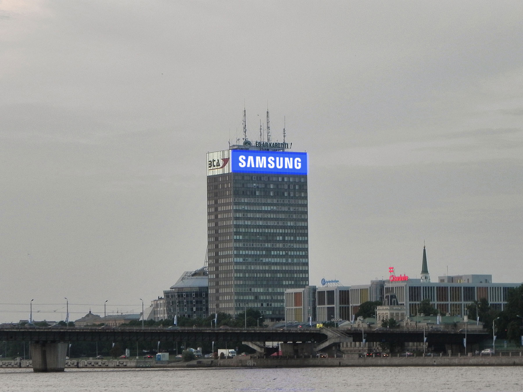 SAMSUNG logo. LED open light. Riga, Latvia