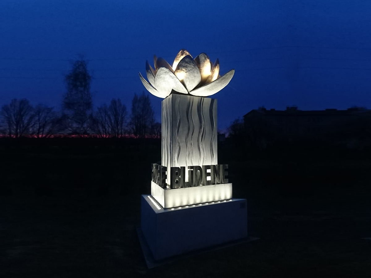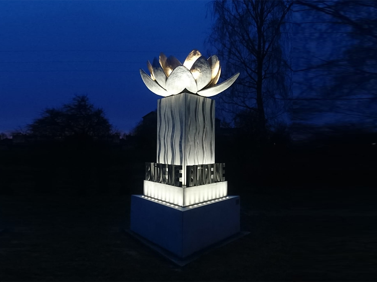 Atklāts vides objekts “Laika rats 100”. Virspusēji LED gaismekļi ar vadāmu krāsu. Jelgava, Latvija