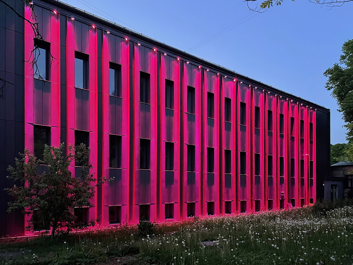 Daugavpils Olympic Center. Dynamic facade lighting.