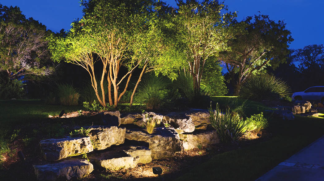 Ainavu apgaismojums ļauj turpināt baudīt sava dārza skaistumu pat tad, kad apkārt jau satumsis. Un tas var pat piešķirt dramatisma niansi jūsu ainavai, ar labi novietotiem āra prožektoriem un lineārajiem gaimekļiem, kas met intriģējošas ēnas un akcentē labākos augus, ūdens objektus ar zemūdens apgaismojumu un citus aspektus. Koncentrējot uzmanību uz svarīgākajām jūsu ainavas detaļām, ainavu apgaismojums palīdz cilvēkiem arī droši pārvietoties, izgaismojot celiņus un terases.