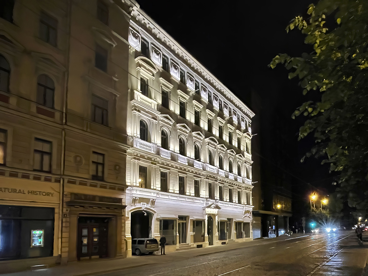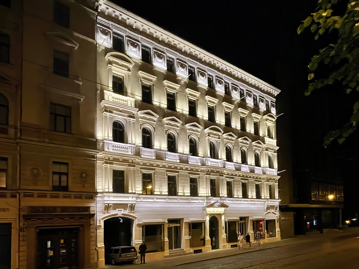 ĒKAS FASĀDES APGAISMOJUMSKRIŠJĀŅA BARONA IELA 2, RĪGĀ