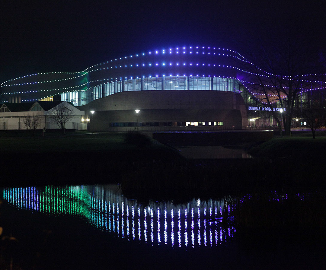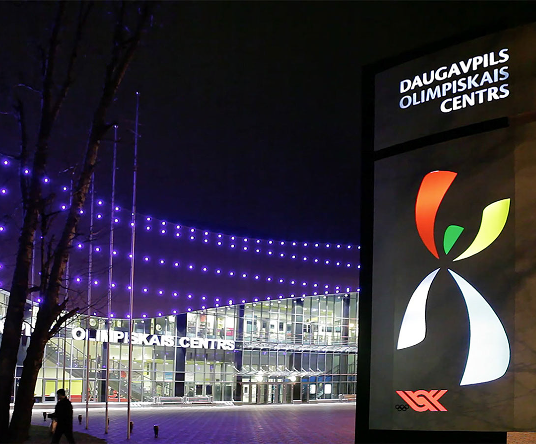 Mūsu uzņēmuma izstrādātais un uzstādītais Daugavpils Olimpiskā centra fasādes apgaismojuma dizains pēc saviem rādītājiem ir salīdzināms ar slavenā Abū Dabī tūristu kompleksa Yas Hotel apgaismojuma risinājumu. Projekts ir ievērojams ar to, ka speciāli tā īstenošanai mūsu uzņēmums sadarbībā ar sporta kompleksa galveno arhitektu ir izstrādājis unikālu dekoratīvās fasādes apgaismojuma sistēmu, kas pilnībā realizēta, balstoties uz mūsdienu tehnoloģijām LED inženierijas jomā.