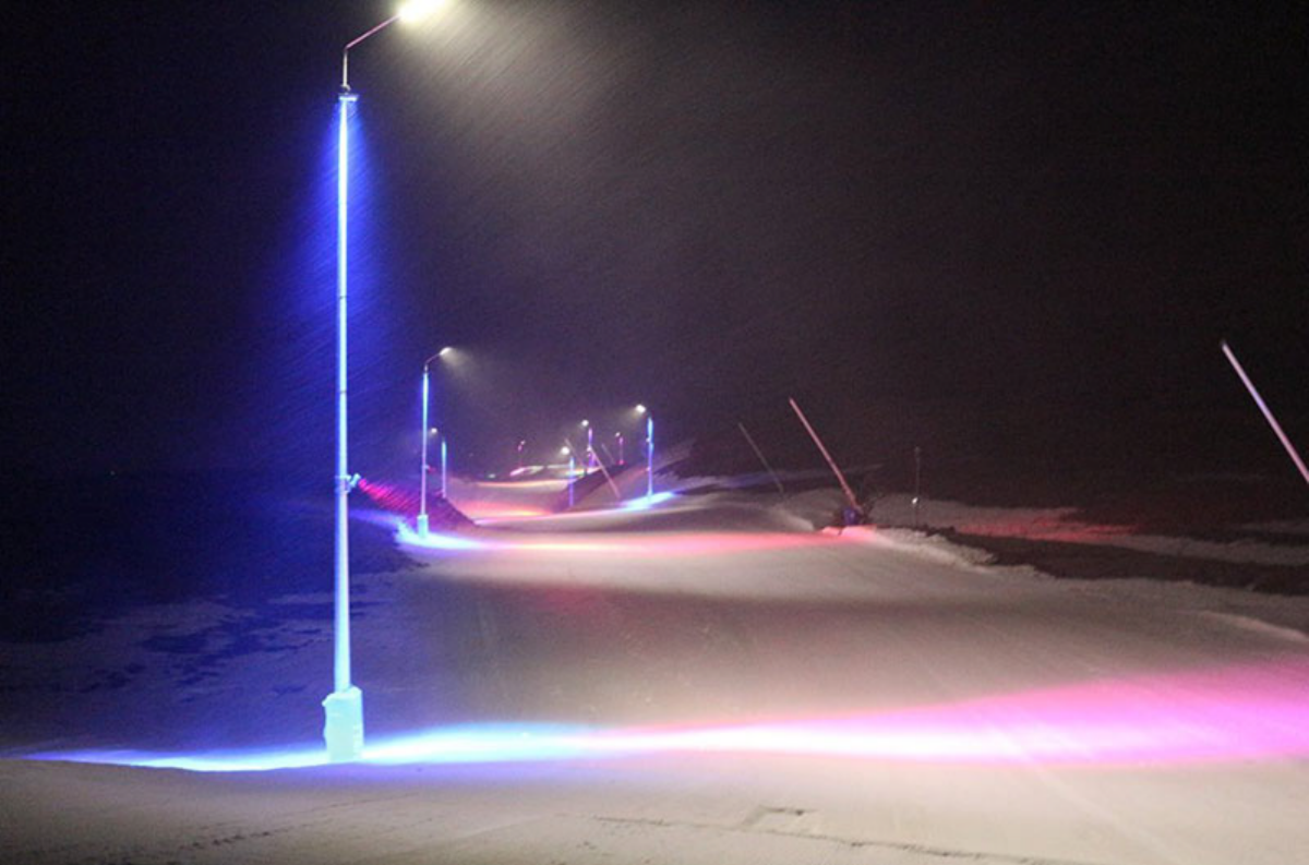 The power supply from the company “MeanWell” perfectly match in all respects and reliably provide a stable and long-term work with maximum efficiency. Neonita.lv provides full service support and does have a remote access to the lights system management via the Internet. As Kote Kadagidze, the general director of "Didveli" track, said, the ski resort is located in the stage of development. Now there were installed snow cannons and ultra modern LED lighting, which is used at most of modern European trails, and due to that innovation skiing here is now possible till the middle of April. Kote Kadagidze confirmed, that lamps illuminate the ski trail in polychromatic dynamic mode, luminaries are frost-resistant, easy to use and reliable. For the first time in history of Bakuriani, Didveli is illuminated at night, and thus skiing is available at any time. Innovative LED street lamp SkiLight360 is ideal for lighting of building grounds and sports grounds, parking lots and other large spaces. For more information about the specification of a unique design, contact experts of Neonita.lv.