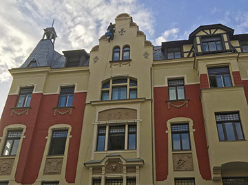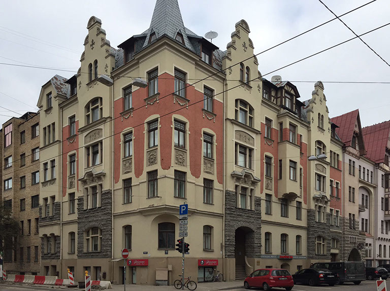 The building on the 13 Stabu street was built in 1907 (Arсhiteсt Vilhelms Hofmanis (1869-1945)). It is one of the few buildings of V. Hofmanis, built in the modern style. The building has exquisite shapes, its facade is decorated with numerous relief decorations and stone cladding.